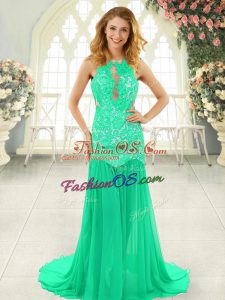 Inexpensive Turquoise Sleeveless Lace Backless Prom Evening Gown