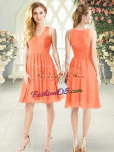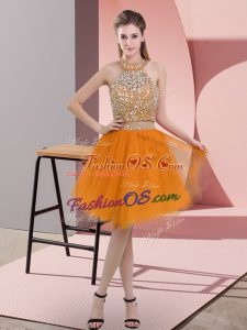Adorable Knee Length Orange Prom Dresses Organza Sleeveless Beading