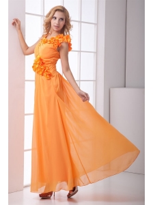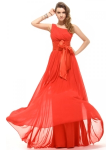 Empire Orange Red One Shoulder Bow Ruching Chiffon Prom Dress