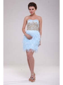 Light Blue Sweetheart Sequins Feather Mini-length Prom Dress
