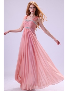 Simple Empire One Shoulder Beading and Ruching Chiffon Prom Dress
