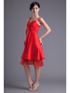 Sweetheart Knee-length Hand Made Flowers Prom Dress in Coral Red