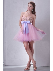 Beaded Decorate Brust Sweetheart Mini-length Baby Pink Prom Dress