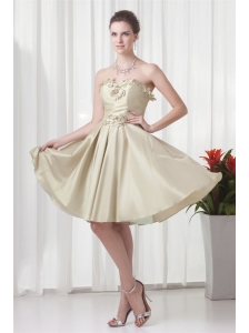 A-line Black Strapless Knee-length Hand Made Flowers Prom Dress