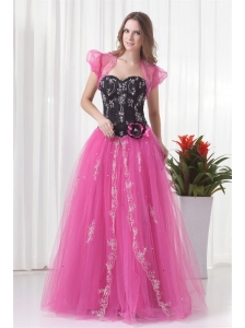 Sweetheart Hand Made Flowers and Silt Chiffon Black Prom Dress