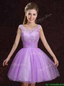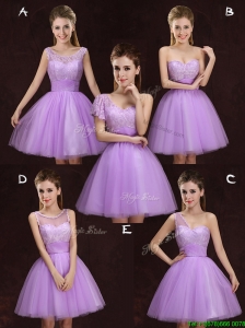 2017 Fashionable Lilac Short Prom Dress with Lace and Ruching