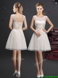 2017 Lovely See Through Scoop Short Prom Dress with Appliques and Lace