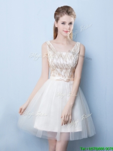 2017 Popular Champagne Square Short Prom Dress with Sequins and Bowknot