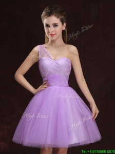 Affordable One Shoulder Tulle Short Prom Dress with Lace