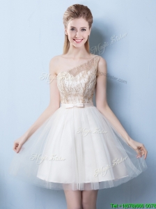 Beautiful One Shoulder Sequined and Bowknot Champagne Prom Dress