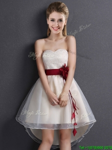 Classical High Low Sweetheart Champagne Prom Dress in Organza