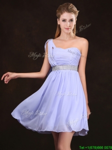 2017 Beautiful Belted and Applique Lavender Prom Dress with One Shoulder