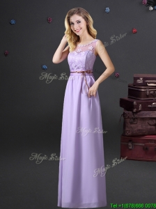 2017 Exclusive Empire V Neck Lavender Prom Dress with Lace and Belt