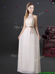 Luxurious Laced and Belted Prom Dress with Halter Top