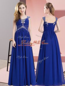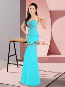 Noble Light Blue Sleeveless Organza Lace Up Prom Gown for Prom and Party