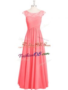 Chiffon Scoop Cap Sleeves Zipper Lace Prom Gown in Pink