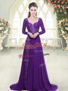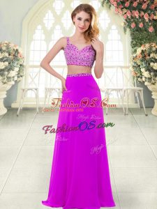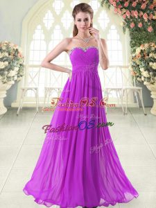 Sophisticated Purple Sleeveless Beading Floor Length Prom Dress