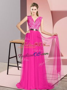 Empire Sleeveless Fuchsia Dress for Prom Sweep Train Zipper