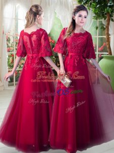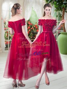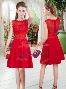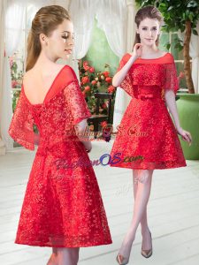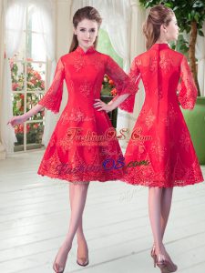 Pretty Knee Length Zipper Prom Gown Red for Prom and Party with Lace