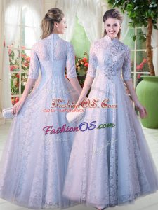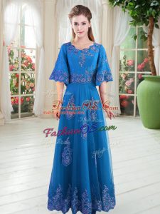 Flirting Floor Length A-line Half Sleeves Blue Lace Up