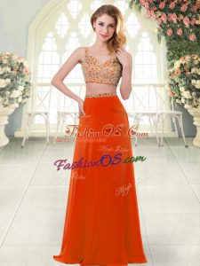 Dynamic Red Sleeveless Sweep Train Beading and Lace Evening Dress