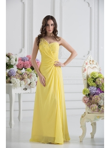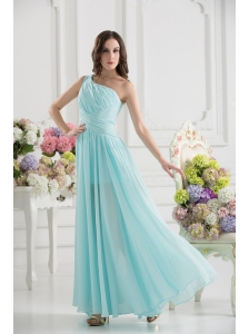 Turquoise One Shoulder Beading and Ruching Prom Dress with Brush Train