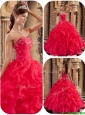 Puffy  Coral Red Ball Gown Floor Length Ruffles Quinceanera Dresses