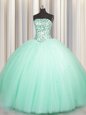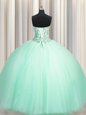 Puffy Skirt Apple Green Tulle Lace Up Quinceanera Gown Sleeveless Floor Length Beading and Sequins