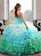 Puffy Sweetheart 2015 Quinceanera Gown with Appliques and Ruffled Layers