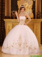 Puffy  White Strapless Quinceanera Dresses with Appliques