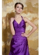 Home >  Prom Dresses >  Cheap Prom Dresses > Purple A-line Halter Floor-length Elastic Woven Satin Beading and Ruch Prom Dress