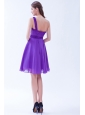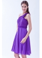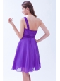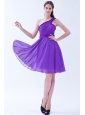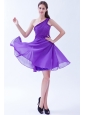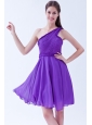 Purple A-line One Shoulder Chiffon Ruch Prom Dress Knee-length
