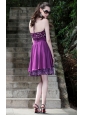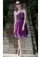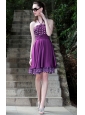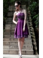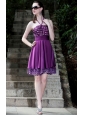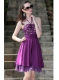 Purple A-Line / Princess Halter Knee-length Taffeta Rhinestones Prom / Cocktail Dress
