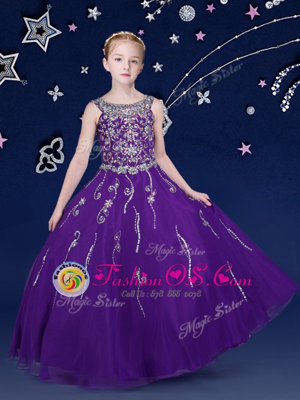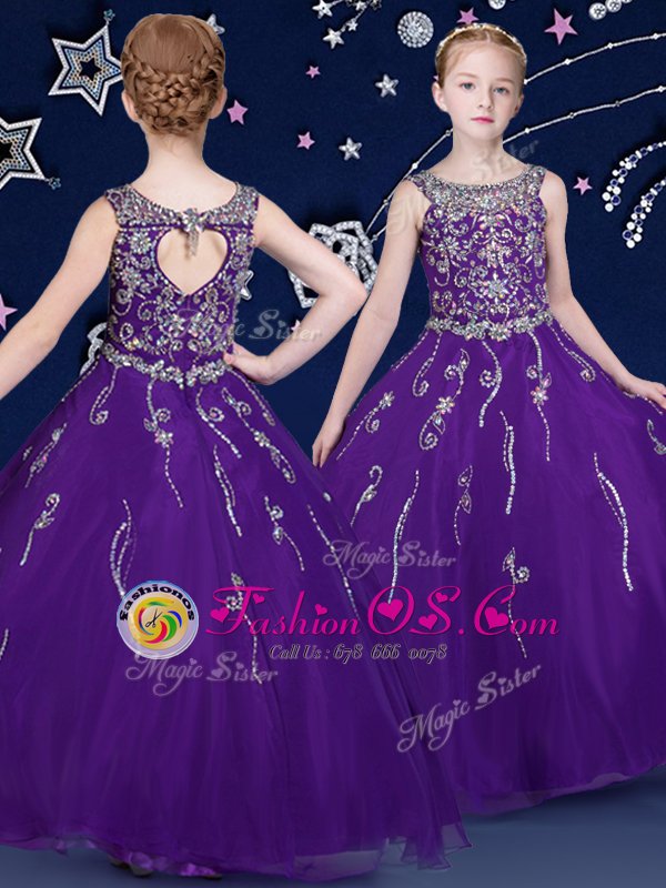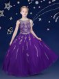Purple Asymmetric Neckline Beading and Ruffled Layers Little Girl Pageant Gowns Sleeveless Lace Up