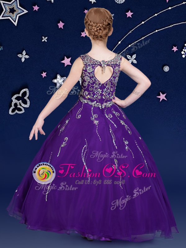 Home >  Special Occasion Dresses >  New Style Little Girl Pageant Dresses > Purple Asymmetric Neckline Beading and Ruffled Layers Little Girl Pageant Gowns Sleeveless Lace Up