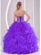 Home >  Quinceanera Dresses >  Discount Quinceanera Dresses > Purple Ball Gown Sweetheart Ruffles and Beading Lace Up Discount Quinceanera Dresses