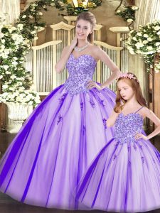 Purple Ball Gowns Beading Ball Gown Prom Dress Lace Up Tulle Sleeveless Floor Length