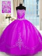 Purple Ball Gowns Organza Strapless Sleeveless Beading and Embroidery Floor Length Lace Up Ball Gown Prom Dress
