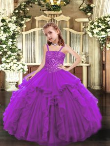 Home >  Special Occasion Dresses >  Beautiful Kids Pageant Dresses > Purple Ball Gowns Organza Straps Sleeveless Beading and Ruffles Floor Length Lace Up Pageant Dress Toddler