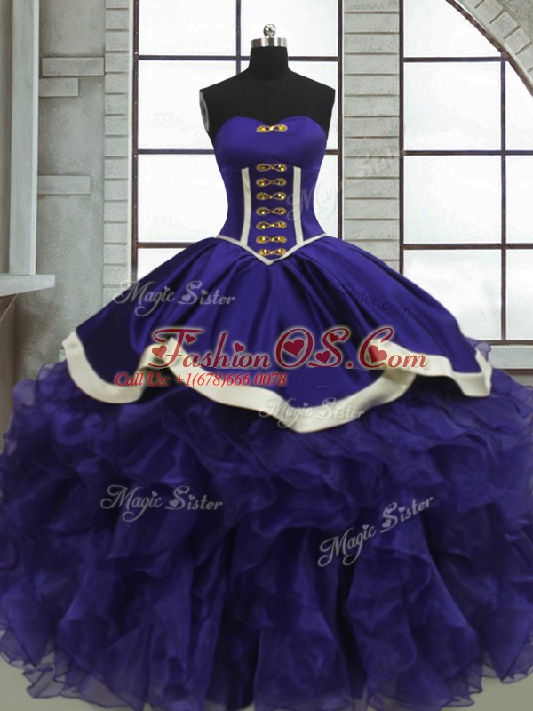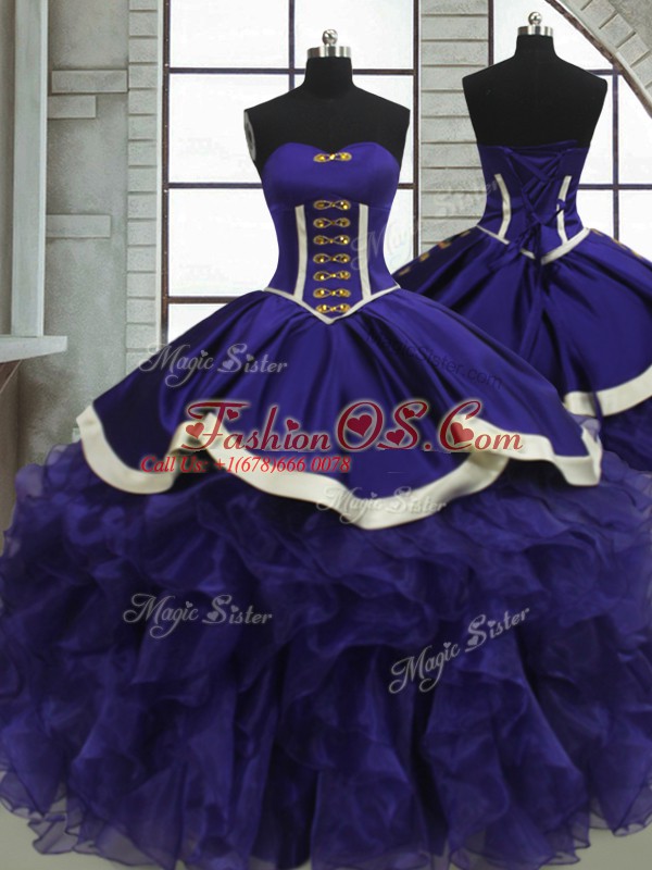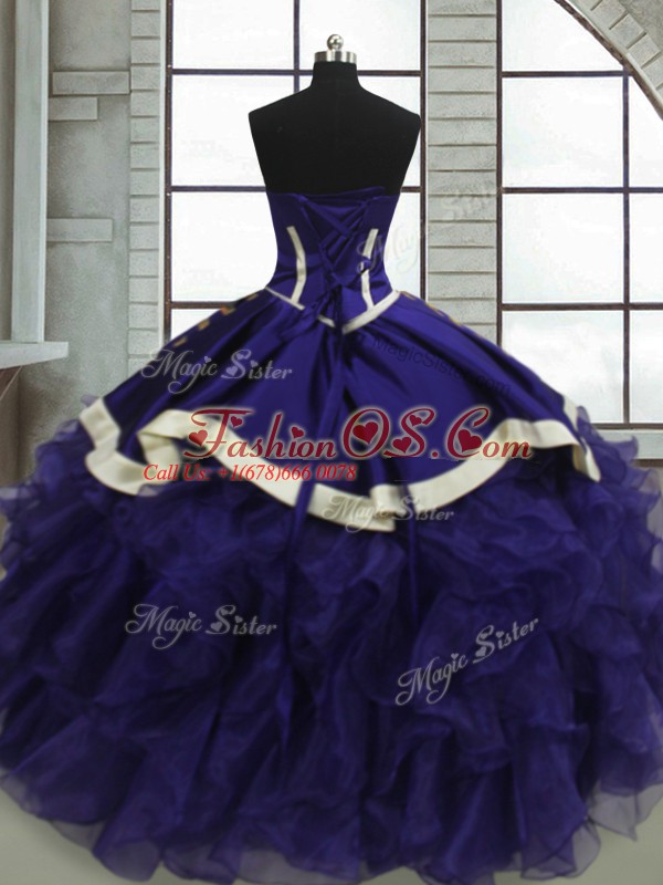 Purple Ball Gowns Sweetheart Sleeveless Organza Floor Length Lace Up Ruffles Sweet 16 Dress