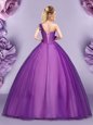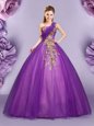Home >  Quinceanera Dresses >  Pretty Quinceanera Dresses > Purple Ball Gowns Tulle One Shoulder Sleeveless Appliques and Ruffles Floor Length Lace Up 15th Birthday Dress