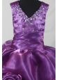 Home >  Special Occasion Dresses >  Little Girl Pageant Dresses > Purple Beading and Hand Made Flowers For Little Girl Pageant Dresses