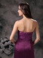 Simple yet Elegant. The strapless bodice is ruched and features a heart-shaped neckline. The deep purple material hangs seamlessly to the floor creating a statuesque look that is sure to make you feel like a super model. A hidden zipper makes for easy off and on and secures the dress in place.