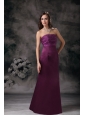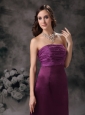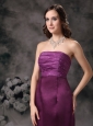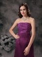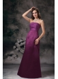 Purple Column Elegant Bridesmaid Dress Strapless Taffeta Beading Floor-length