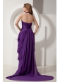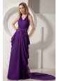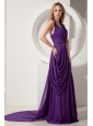 Purple Column Halter Court Train Prom / Evening Dress Chiffon Beading