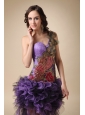 Home >  Prom Dresses >  High Low Prom Dresses > Purple Column One Shoulder High-low Satin and Organza Appliques Homecoming Dress