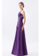 Purple Column / Sheath One Shoulder Prom Dress Chiffon Beading Floor-length
