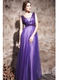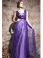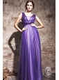 Home >  Prom Dresses >  Discount Prom Dresses > Purple Column / Sheath V-neck Floor-length Chiffon and Tulle Beading Prom / Evening Dress