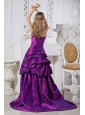 Home >  Prom Dresses >  Cheap Prom Dresses > Purple Column Sweetheart Hand Made Flowers and Beading Prom Dress High-low Taffeta
