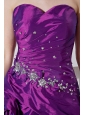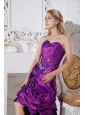 Purple Column Sweetheart Hand Made Flowers and Beading Prom Dress High-low Taffeta